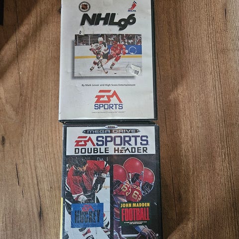 I mycket bra skick. Fungerar perfekt. Alla kablar är med och två handkontroller. 3st spel. Ett nhl och en dubbel spel kassett med hockey och amerikansk fotbollsspel.