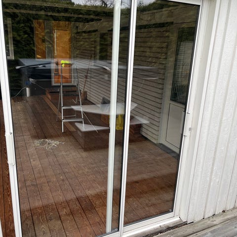 Skjutpartier till uterum altan, 3 skjutbara sektioner och ett fast glas.