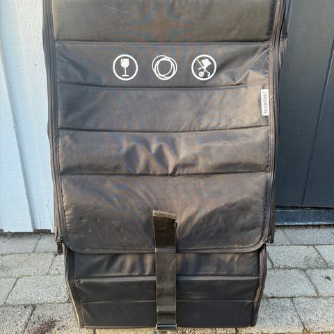 Skydda din Bugaboo -vagn på resan med en Bugaboos komfort transportväska. Den självstående väskan har bekväma bärhandtag, axelremmar och hjul som gör det smidigare från bagageutlämningen och ut på resten av resan. Till väskan medföljer en separat hjulväska att förvara bak- och framhjul så resten av väskan kan vara ren och går enkelt att vika ihop när den inte ska användas mer.
