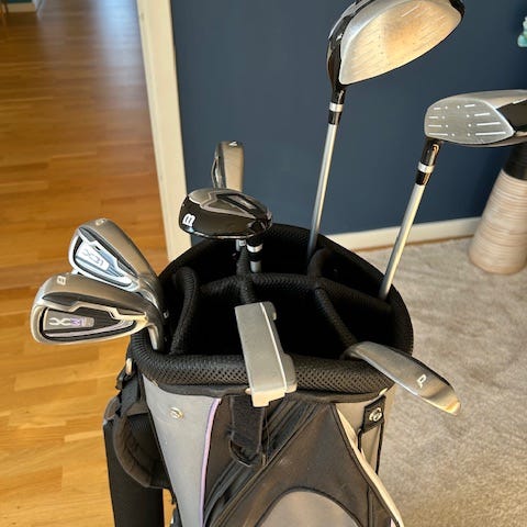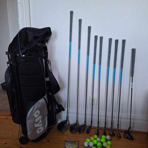 Säljer ett komplett golfset från Olyo för dam (vänster). Perfekt för nybörjare eller dig som vill komma igång direkt – allt du behöver ingår.