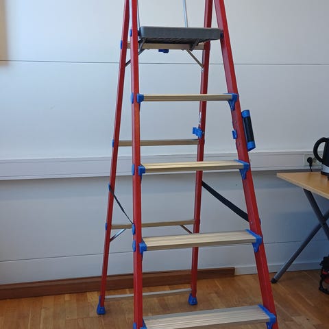 5-stegs aluminium stege i bra skick. Stabil, hopfällbar (EN131, 150 kg).Finns i Götene. 300 kr.