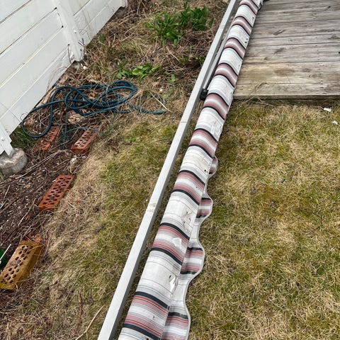 Terassmarkis 7 meter lång med 3,5 meter utfall skänkes. Markisen är manuell med vev. Den funkar som den ska men tyget är väldigt slitet med revor och hål. Markisen skänkes mot avhämtning.