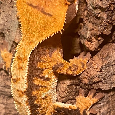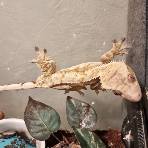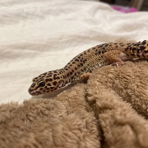 Ödlan äter, skiter och ömsar som den ska.