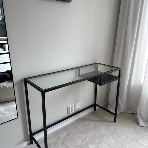 Två kantskador på hyllbrädan om man har den sidan uppåt.