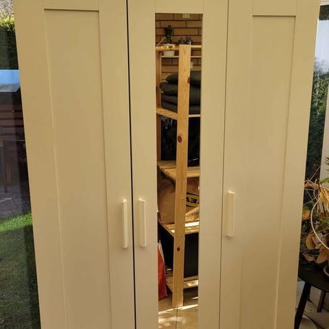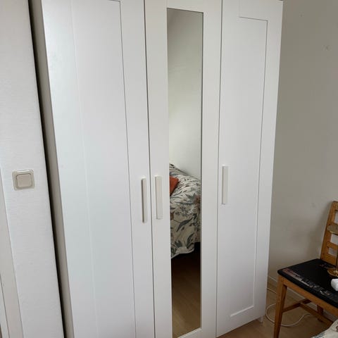 Klädskåp med spegel och 3 dörrar. vit, 117x50x190 cm