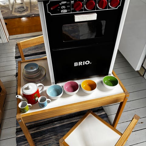BRIO leksakskök med spis och diskbänk. Väger lite. Sysselsätter barn till egenlek.