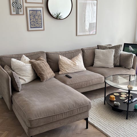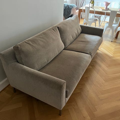 Soffa inköpt på ilva, 3,5 sits 245+95 cm. Sitthöjd 45 cm, rygghöjd 65 cm.