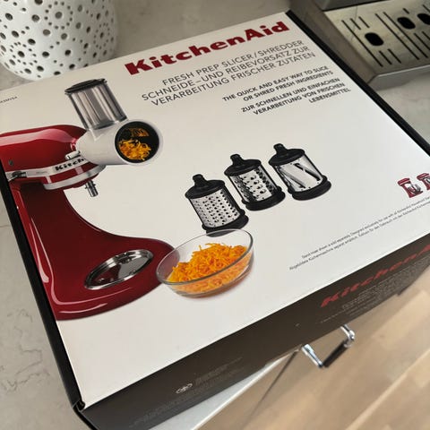 Enheten har en matningsränna upptill och en vridknapp på framsidan för att starta. Medföljer flera utbytbara riv- och skärskivor för att riva och skiva olika typer av råvaror. Bruksanvisning från Philips ingår. Passar för enklare matberedning i hemmet, till exempel rivning av ost och grönsaker samt skivning.