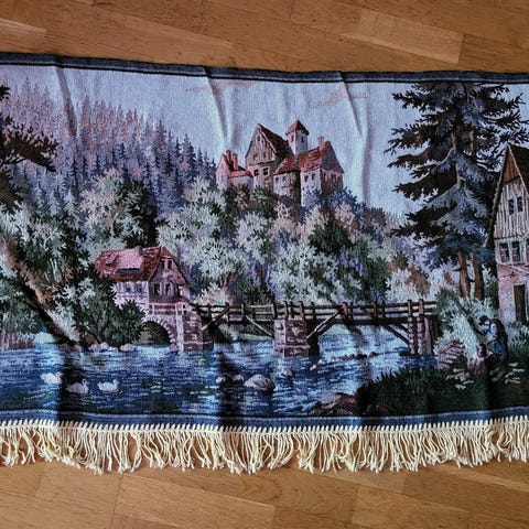 Jag säljer två dekorativa vävda textilier som kan användas både som väggtavla eller som mindre matta. Perfekta för att skapa en varm och unik känsla i hemmet. Ingen skada på de. Finns på Olskroken
