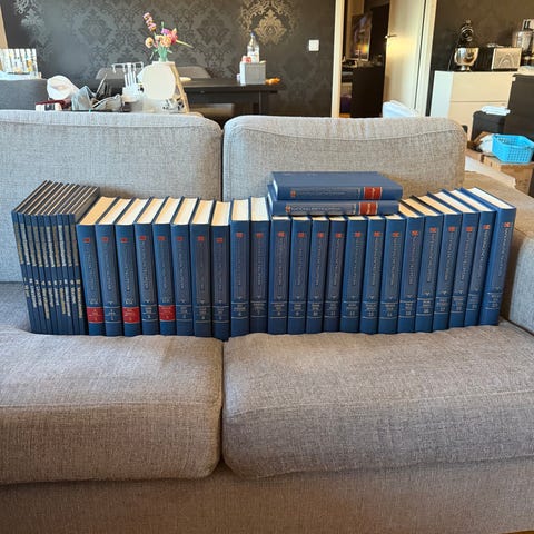 Nationalencyklopedin uppslagsverk i blå band. Flerbandsverk med alfabetiskt ordnade uppslagsord. Passar som referensverk i hem, skola eller på kontor. Antalet band och exakt upplaga framgår av bilderna. Plus en DVD.