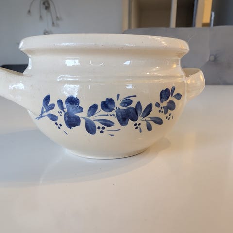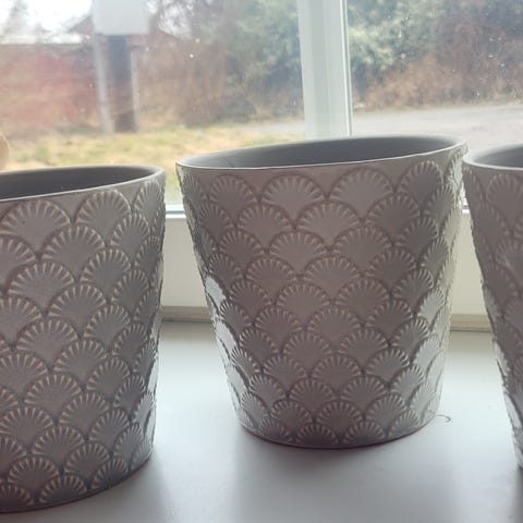 Blå/Vita gamla krukor "ytterfoder" 3stora Gustavsverg ,+ 4 mindre , allt säljes tillsammans 650kr , köp nu och hämta senare går fint.