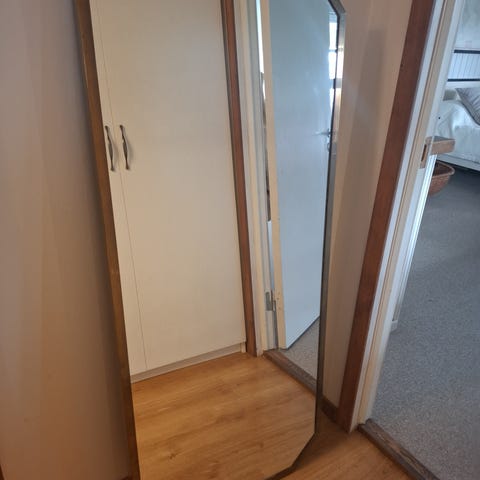 Bl.a. retro teakspegel, IKEA Tranby mosaikspegel.