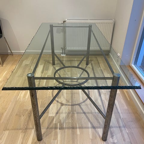 Glasbord i fint skick, ej repad glasskiva men ett jack därav lågt pris.