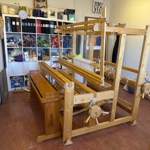 Storlek 170x140cm, vävbredd 150cm. 10 trampor, 10 skaft & 10 lattor.