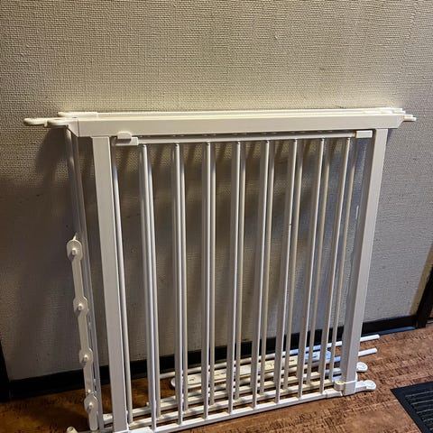 2st BabyDan barngrind i vitlackerad metall. Monteras mot vägg eller dörrkarm med medföljande fästen enligt tillverkarens anvisningar. Bredd går att justera. Passar i öppningar från 62,5-106,8 cm.