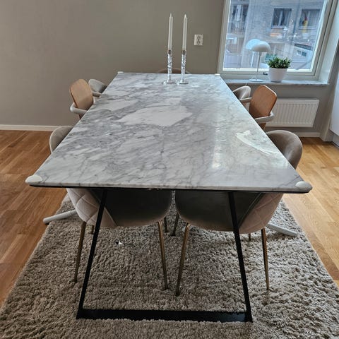 Matgrupp säljs - svart marmor bord (specialdesign: Vikens Hantverkeri)