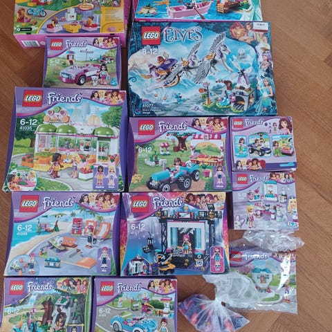 LEGO Friends, elves och creator byggsatser i blandade set. Flera olika modeller och motiv från Friends-serien, för lek och byggande med minifigurer, fordon och miljöer. Seten levereras i separata påsar enligt bilderna. Passar för den som vill komplettera sin LEGO Friends-samling eller använda delarna till egna byggen.