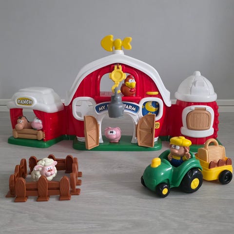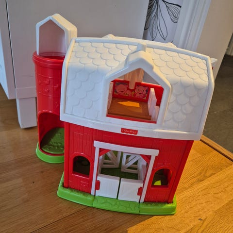 Fisher-Price Little People bondgårdslekset med flera djurfigurer, människor och fordon. Setet innehåller en ladugård med staketsektioner samt tillbehör som traktor och vagn. Figuren och delarna är anpassade för små barnhänder och kan användas för lek som rör bondgård, djur och fordon. Plastmaterial med färgglada detaljer, avsett för yngre barn i förskoleålder. Hämtas hos säljaren.