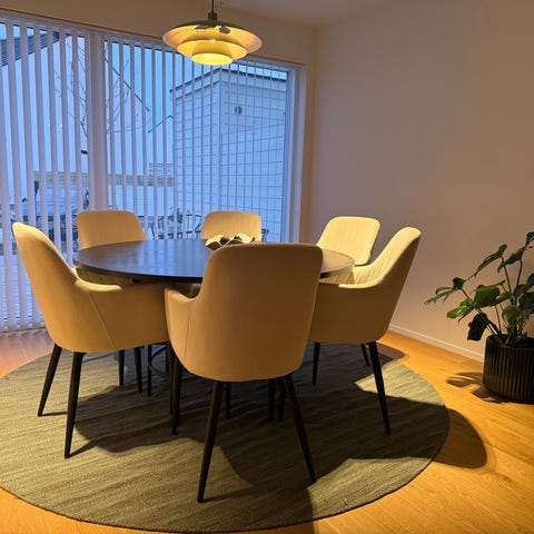 200cm ovalt matbord från Chilli. Nypris 7000kr, inköpt sent 2024 och har inga synliga skador, ser helt nytt ut.
