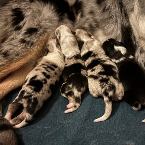 Autralian Shepherd valpar efter Lilhammras Dancing mist in April SE24996/2022 och Zemyka's Your my dream SE23877/2022.