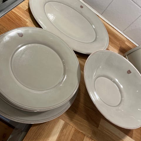 6 st fina stora tallrikar med gråa linjer på ”spegel” kanten