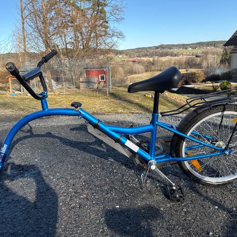 Cykeln är i fint skick och ser mycket välvårdad ut. Sadeln är hel, däcken är fina och helhetsintrycket är mycket gott. Lätt och smidig konstruktion som passar bra för familjeutflykter och vardagscykling.