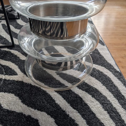 Klar glas. Höjd 36 cm och 16,5 cm i diameter. En stor och hög vas. Som ny. Inga repor eller liknande. Säljer den då den den känns för stor för att passa i min lilla lägenhet. Köpt i december 2025. Nypris 2600 kr.