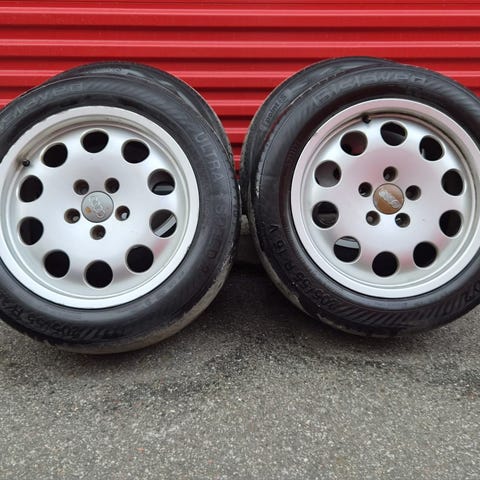 Fälgarna är i fint skick och ger bilen ett stilrent originalutseende. Komplett uppsättning – bara att montera och köra.