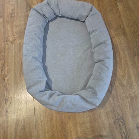 Grått linnetyg. Formbar och passar i spjälsäng. Mått 75 cm x 50 cm.