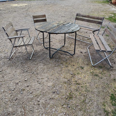 Soffa som är gjord med hästskor och sittbänk 125 cm lång
