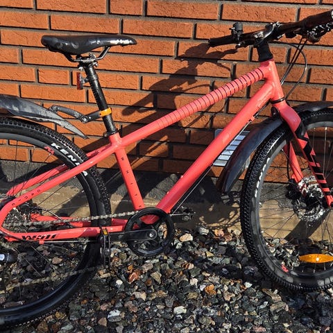 Frog 69 26" lättviktscykel med skärmar och stöd i färgen limegrön.