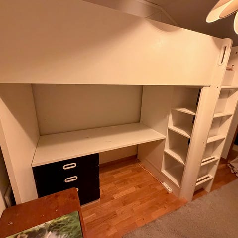 Säljer en gaming loftsäng. Med skrivbord som är inbyggd. Madrass och bäddmadrass i nyskick. Alltid använt madrass skydd. Belysning ingår ej. Nypris för allt ca 9000. Eller kom med vettigt bud.