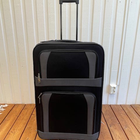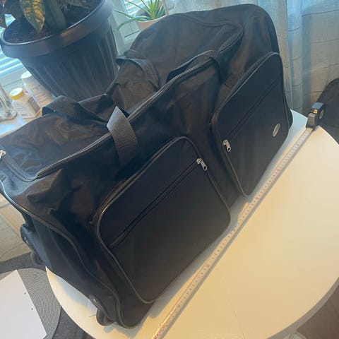 Resväska i svart tygmaterial. Väskan har dragkedja runtom, bärhandtag upptill och på sidan samt spännband på insidan för att hålla packningen på plats. Passar för resor där en större mjuk resväska önskas. Inuti finns ett huvudfack med plats för kläder och andra tillhörigheter.