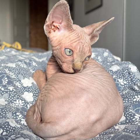 Hon är socialiserad från start så hon är nyfiken, orädd och framåt, så som en sphynx bör vara.😻