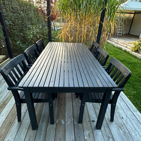 Matgrupp rektangulärt bord och 4 svarta stolar