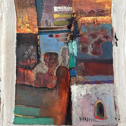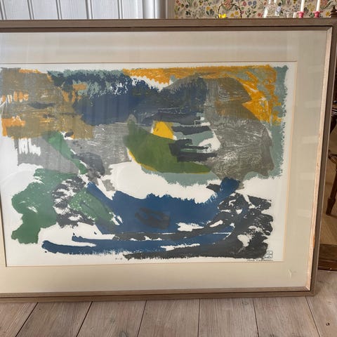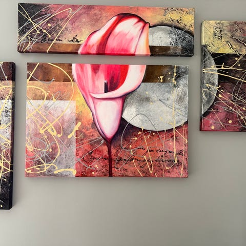 Abstrakt tredelad tavla i starka färger