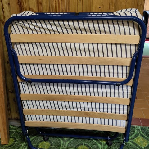 Ihopfällbar extrasäng i metall inklusive madrass.