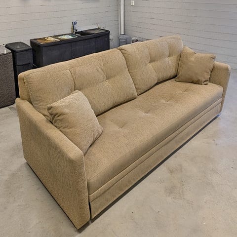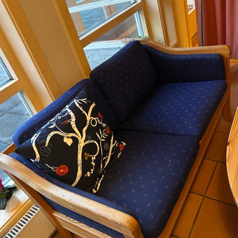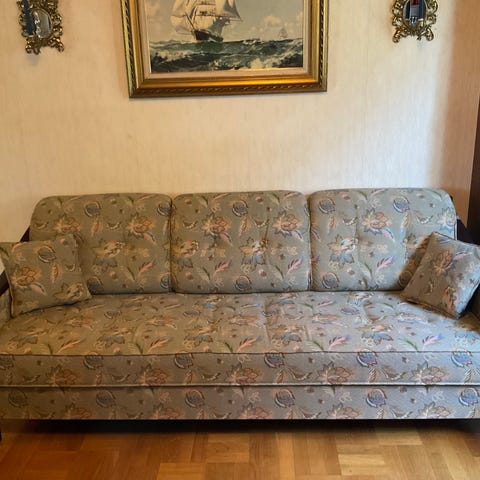 Bäddsoffa trä med randigt tyg