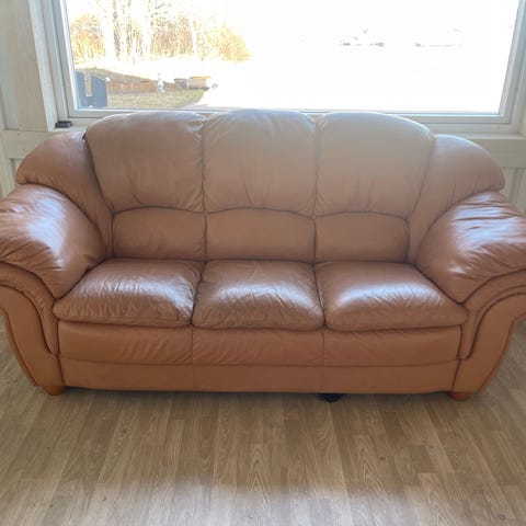 3 sits svart lädersoffa i bra skick. Säljes pgs flytt.