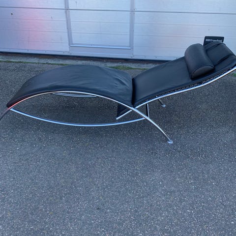 Stolen har svart läder och kromad ram och passar perfekt som loungemöbel i vardagsrum, läshörna eller kontor. Ergonomisk form som gör den väldigt skön att vila i.