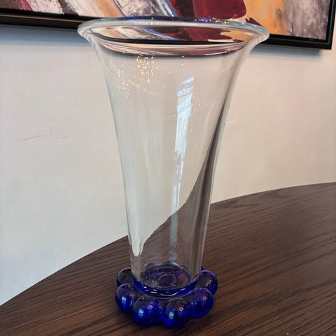 Orrefors glasskålar och glasvaser i klart glas. Setet består av flera skålar och vaser i olika storlekar med blomformade kanter och mönster. Passar som serveringsskålar, ljuslyktor eller som dekoration i hemmet. Alla delar är i glas och har en enhetlig stil som gör att de kan användas tillsammans som ett set.