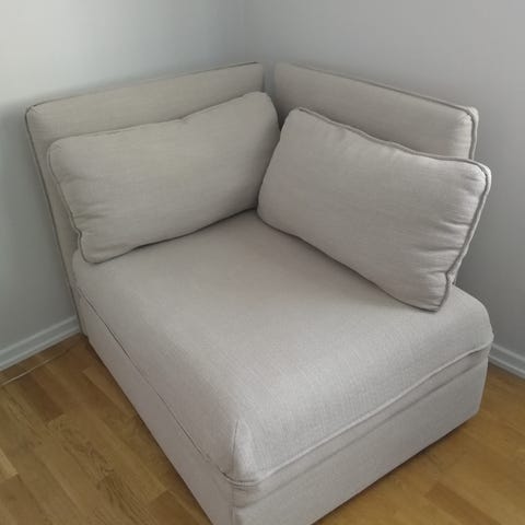 Bäddsoffa med längd 205 cm, bredd 80 cm. I utbäddat läge är bredden 105 cm.