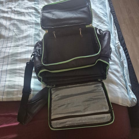 Kylväska i mjukt material med isolerad insida. Väskan har rektangulär form och öppnas med lock upptill. Utsidan är grön och grå med justerbar axelrem för enkel transport. Insidan är klädd med reflekterande, kylande foder som hjälper till att hålla mat och dryck kall. Passar för utflykter, picknick, strand eller resor där kylda varor behöver förvaras under kortare tid.