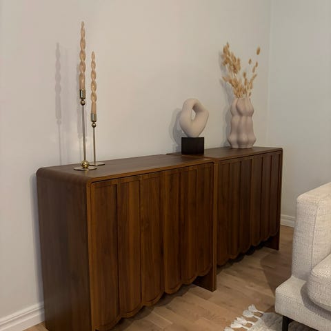 Fantastisk sideboard i massiv svartbetsad teak som rymmer allt och lite till och är som ett konstverk i inredningen.
