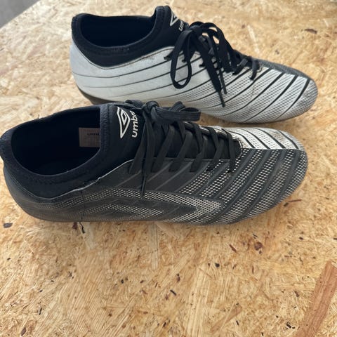 Puma fotbollsskor i storlek 42. Skorna är lila med röda detaljer och har fasta dobbar anpassade för spel på natur- eller konstgräs beroende på underlagstyp. Ovandelen är i syntetmaterial med snörning för justerbar passform. Lämpliga för fotbollsträning och matchspel.