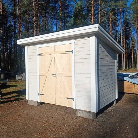 Fjällstugans minste förråd 1800x2400 som passar till exempel Förråd, Garage för trädgårds traktorn/trädgårds verktyg, Vedbod, Lilla bastun eller lyx utetoalett, Lekstuga, pumphus eller batteri förråd till solcell projekt.