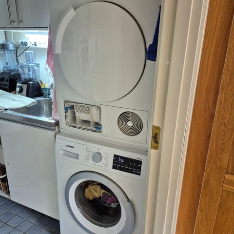 Då vi köpt en större o kombinerad tvätt/tork så behövs ej denna längre. Tänkte om någon vill ha till sina arbetskläder, stal kläder så behöver man inte bara rädd om den. Tvättar bra men den är tyvärr för liten för oss (4 barn o två vuxna).