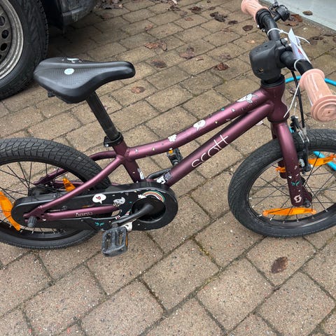 Säljer en lila White XC 160 Lite, en extra smidig och lätthanterlig barncykel (4–6 år).
