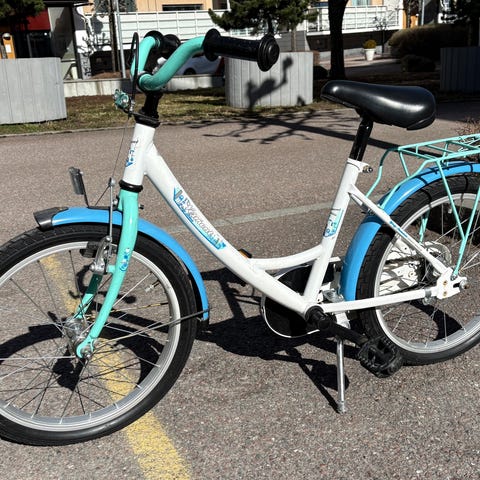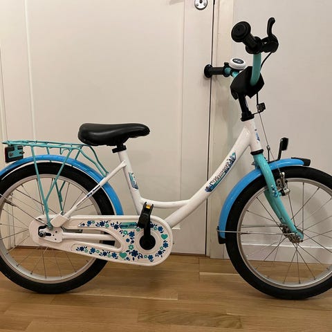 Knappt använd barncykel. 1-2 år gammal och i skick som ny. Stödhjul och/eller pinne finns också. För att vara en 18-tummare är den ganska liten så om du letar efter en 16-tummare kan denna funka också.