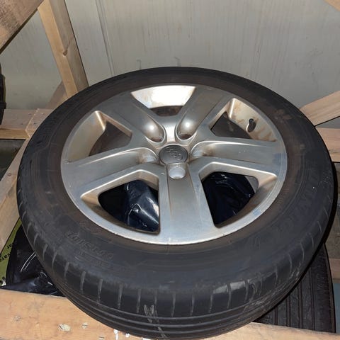 Ett däck har lite skav på fälgen, se bild. Övriga 3 däck är utan skador.